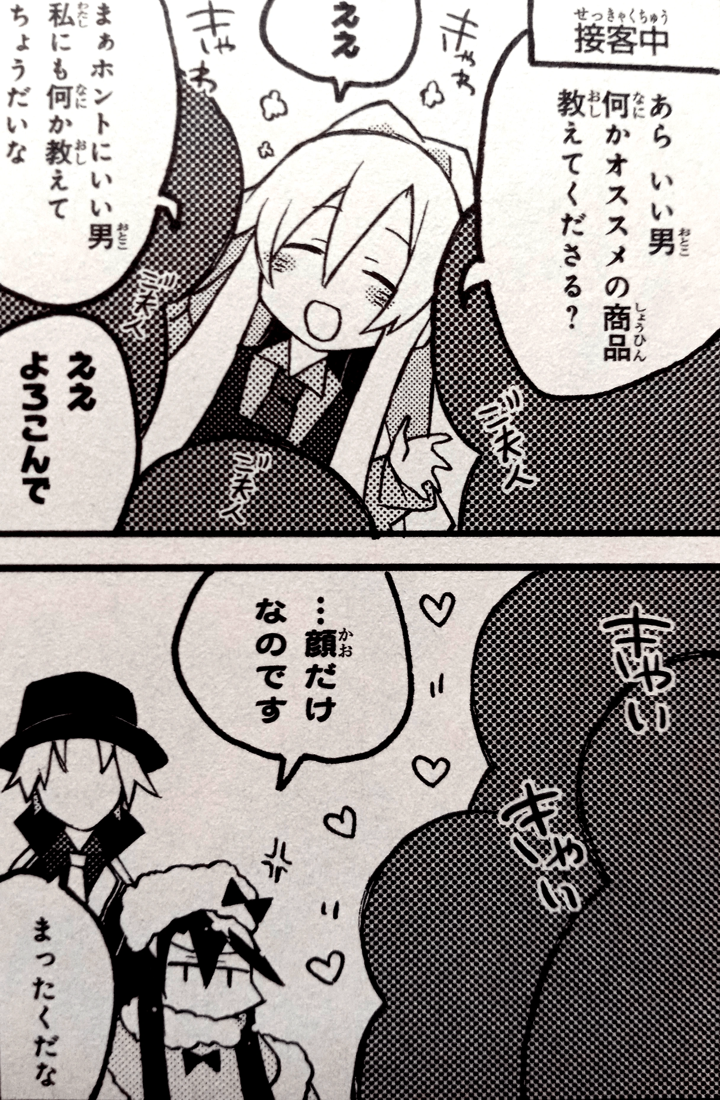 In Chapter 8, it's revealed that the Professor has another part-time job. After all, he spent a lot of money taking Rasiel out to eat. Hugh met him in a store while looking for a White Day gift for Dalian. The Professor imagines that a perfect gift for Rasiel would be human misfortune.