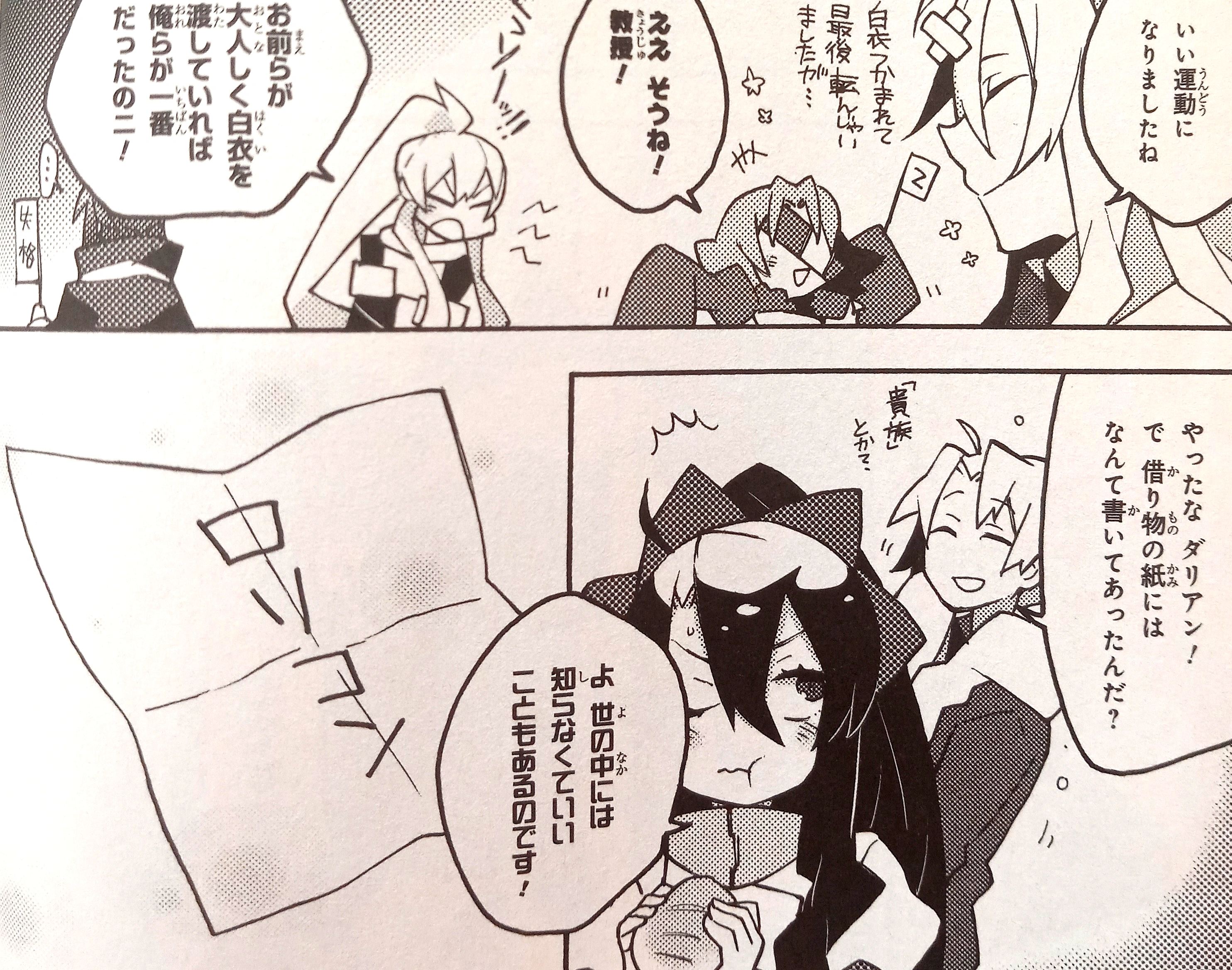 In Chapter 7, Dalian invites Flamberge and Rasiel to make Valentine's Day chocolates. Hugh, Hal and the Professor have no choice but to wait inside a cold igloo. The girls eventually call them to taste the chocolates. Professor is excited to try Rasiel’s chocolate cake. He collapses as soon as he bites into it. Dalian reveals that she changed Rasiel’s recipe.[20]