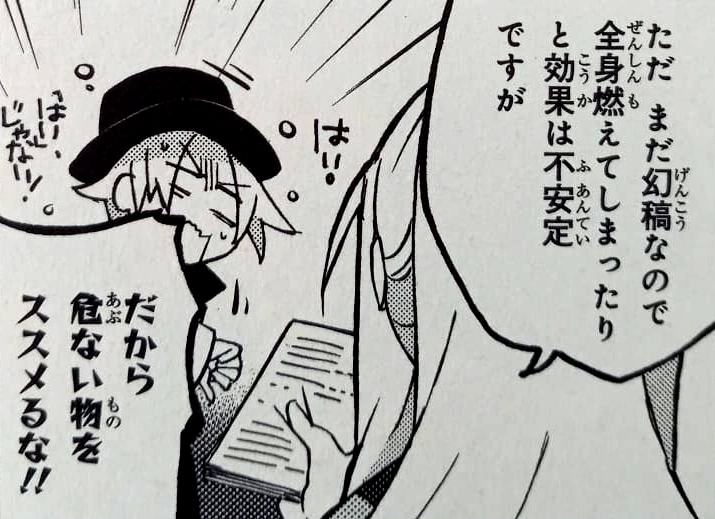 The man returns to the hospital three days later. The patient had drunk the medicine described in the Phantom Book Egg. The next morning, a copy of himself had appeared. According to the Professor, the division was a success. The shopkeeper’s wish of having a second body was fulfilled.
